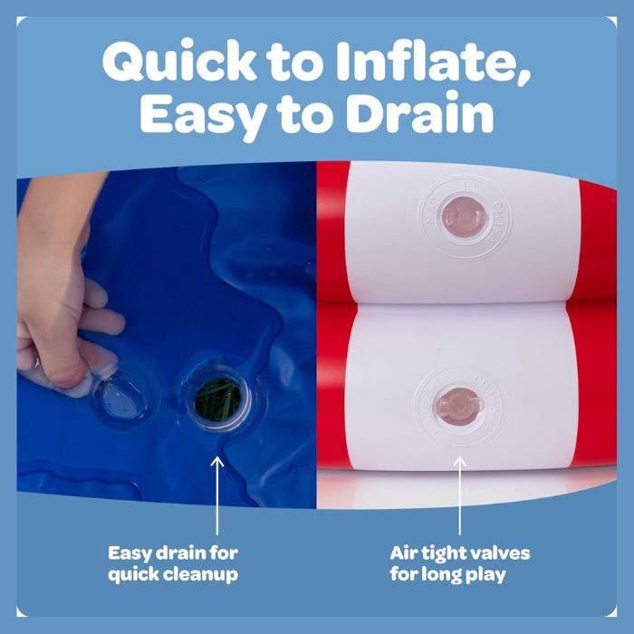 • Simply inflate the kiddie pool, fill it with water, and let the fun begin! Perfect for backyard and lawn games, beach days, or carnival games for kids’ parties outdoors.